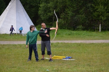 Dnes navečer měl náš osmý oddíl možnost vyzkoušet si střelbu z luku. Nejdříve jsme prohledali táborový sklad, abychom našli potřebný materiál, a pak si vlastními silami společně vyrobili terč. Někdo řezal molitan, další kluci ho připevňovali k desce, ostatní kreslili vodovými barvami čtyřbarevný terč. A pak se šlo na hřiště. Při střelbě nám asistoval Aleš, zkušený to lukostřelec, a naše oddílová vedoucí Blanka, která nám nasadila chrániče na prsty a předloktí. Šípy svištěly tak rychle a lítaly tak daleko, že jsme nakonec dva prostě nenašly. Sorry jako. I když někdo se netrefil a někdo zase jó, všichni jsme si to užili a přestávky mezi výměnami střelců si navíc krátili fotbálkem s kluky ze dvojky. Robin Hood by z nás měl určitě radost!
