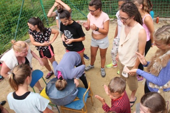 Jednotlivé "kmínky" soutežily mezi sebou o to, kdo nejdéle vydrží s hlavou ponořenou v hrnci s vodou. Jejich výkony se pak sčítaly a vítězným týmem se stal tým poslední. Bobrům zdar!